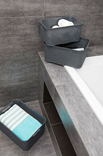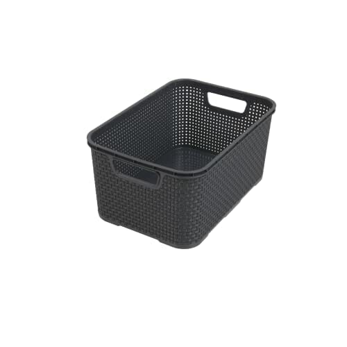 BranQ – Home Essential uniwersalny, wielofunkcyjny kosz o wyglądzie rattanowym, rozmiar L 19 l, tworzywo sztuczne PP bez BPA, antracytowy, 38 x 27,8 x
