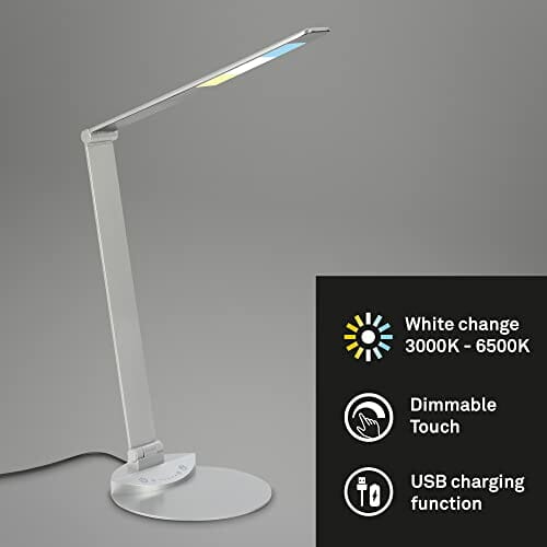 BRILONER – lampa stołowa LED z możliwością regulacji, lampa stołowa LED odchylana, lampa biurkowa dotykowa, z możliwością regulacji temperatury barwowej, ściemniana, kolor srebrny