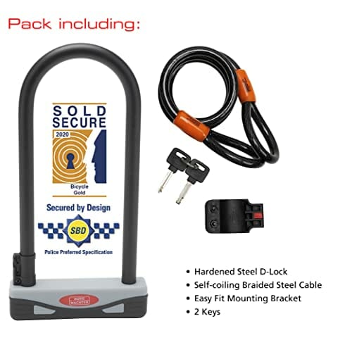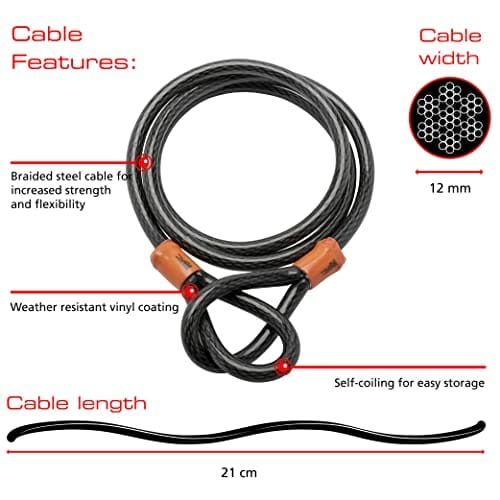Burg Wächter 1600HB 1600 HB KIT złoty sprzedany bezpieczny zamek rowerowy D, czarny, duży kabel 2,1 m