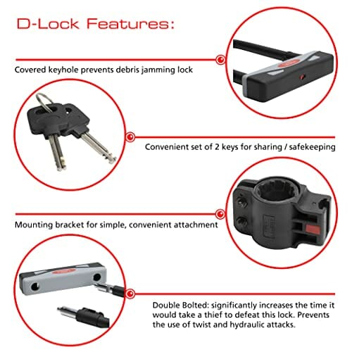 | Dołączone części składowe | Blokada D, Kabel 2,1 m, Zestaw montażowy |