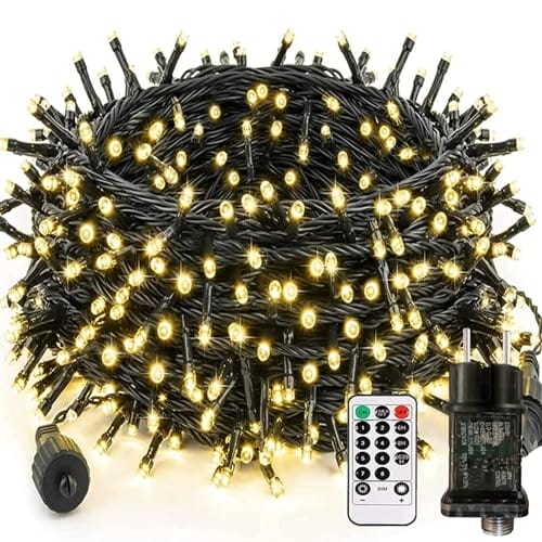 Bzavor Łańcuch świetlny LED, prąd 50 m, 500 diod LED, pilot zdalnego sterowania, funkcja timera, łańcuch świetlny IP65, wodoszczelny do użytku wewnątrz i na zewnątrz, niskie napięcie, łańcuch świetlny na imprezę, Boże Narodzenie, do ogrodu, pokoju, ciepła biel