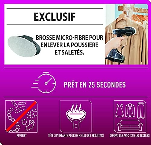 • Funkcje specjalne: ‎Akcesoria przeciwpyłowe z mikrofibry, Bezpieczny dla wszystkich tekstyliów, Gotowe ubrania natychmiast, Gotowe w skrócie:, Mocna i naturalna para, Mo