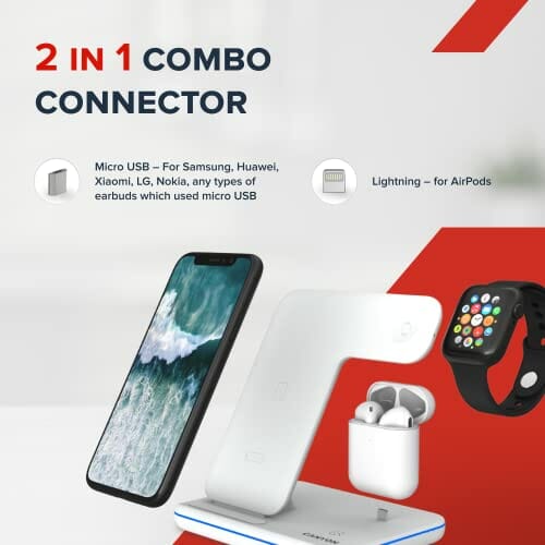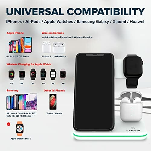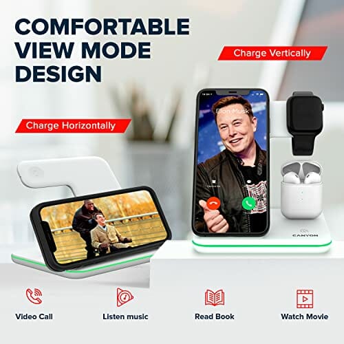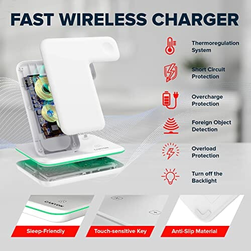 • ✅ Zawiera kabel do ładowania typu C – antypoślizgowa podstawa zawiera przewód do ładowania typu C, który ułatwia podłączenie do biurka lub stolika nocnego. Adapter nie jest dołączony, zalecamy używanie 24W QC. Aby ładować 3 urządzenia jednocześnie, użyj adaptera QC 24W. Standardowe gniazdo ścienne do iPhone’a (tylko 5W) będzie zasilane, aby umożliwić ładowanie tylko jednego urządzenia umieszczonego na stacji.