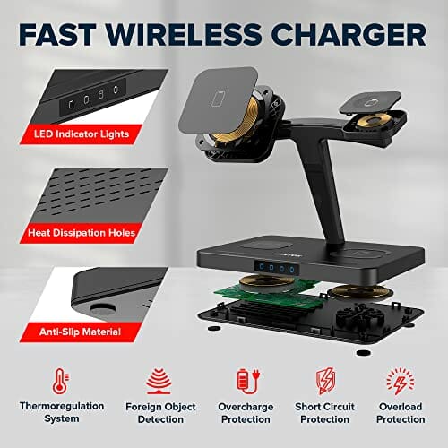 • ✅ Bezpieczne ładowanie: stacja ładująca z antypoślizgową konstrukcją silikonową i otworami odprowadzającymi ciepło. Wyposażony w technologię automatycznego sterowania, ochronę przed przeciążeniem, ochronę przed przepięciem i ochronę przed przegrzaniem, ta bezprzewodowa podstawka ładująca do Apple ochroni Twoje urządzenia przed przeładowaniem i przegrzaniem, zapewniając bardziej wydajne ładowanie