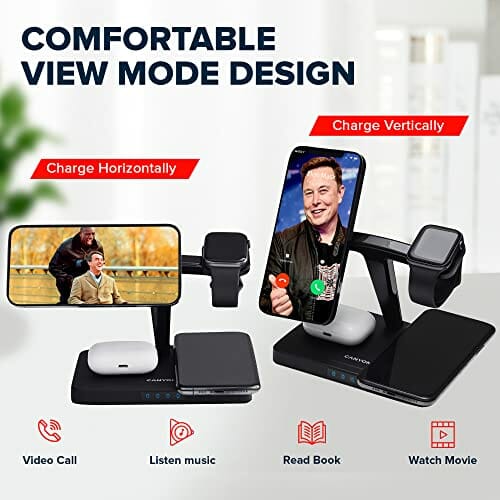 • ✅ Szybkie ładowanie: bezprzewodowa stacja ładująca 15 W, 4 w 1, z adapterem sieciowym 36 W, może jednocześnie obsługiwać telefon, Apple Watch i AirPods. Telefon komórkowy można łatwo naładować za pomocą etui, o ile nie jest grubszy niż 5 mm. Nie trzeba wielokrotnie zdejmować etui na telefon. Wystarczy położyć telefon na tej podkładce bezprzewodowej ładowarki i rozpocząć ładowanie