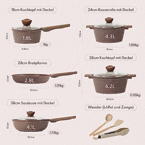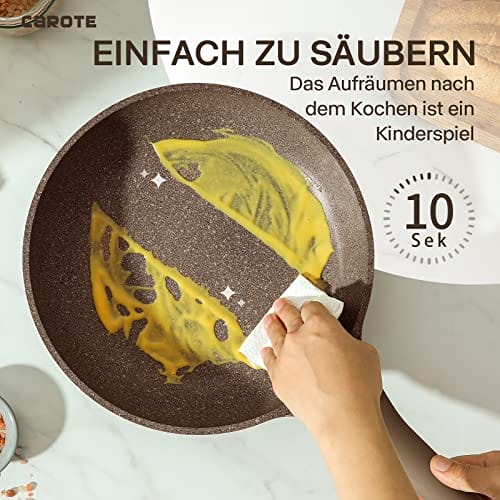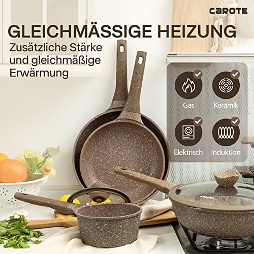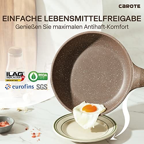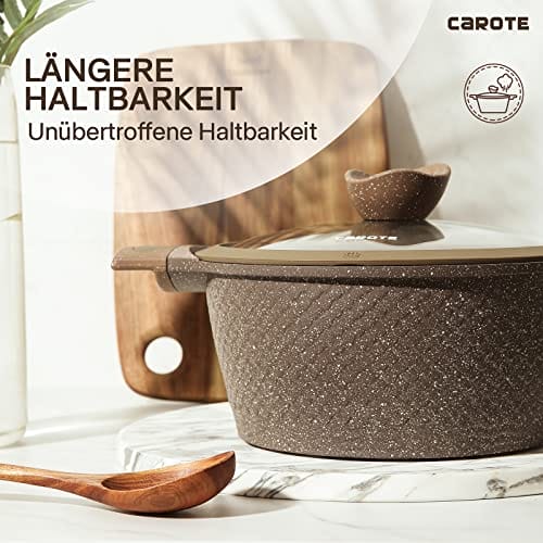 CAROTE Zestaw garnków 12-częściowy patelnia 28 cm rondel 17 to niezawodny i wszechstronny zestaw garnków, który zapewni Ci wygodę i satysfakcję podczas gotowania. Dzięki wysokiej jakości wykonania i funkcjonalności, ten zestaw jest idealny zarówno dla amatorów gotowania, jak i profesjonalistów. Niezależnie od tego, czy gotujesz dla siebie, rodziny czy gości, te garnki będą doskonałym wyborem.
