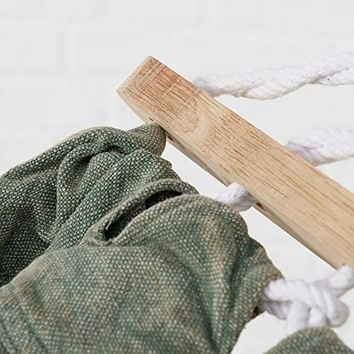 • CasaJame: hamak kolorowy khaki z frędzlami na końcach. Idealnie nadaje się do zawieszenia w ogrodzie, na tarasie lub na balkonie.