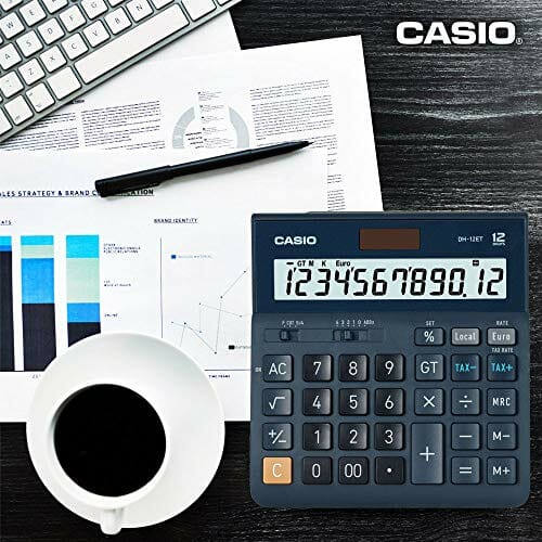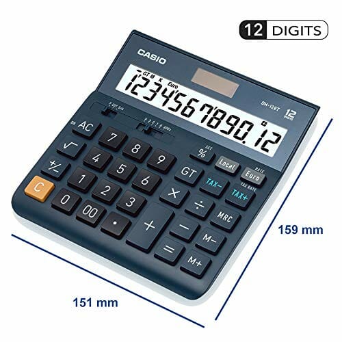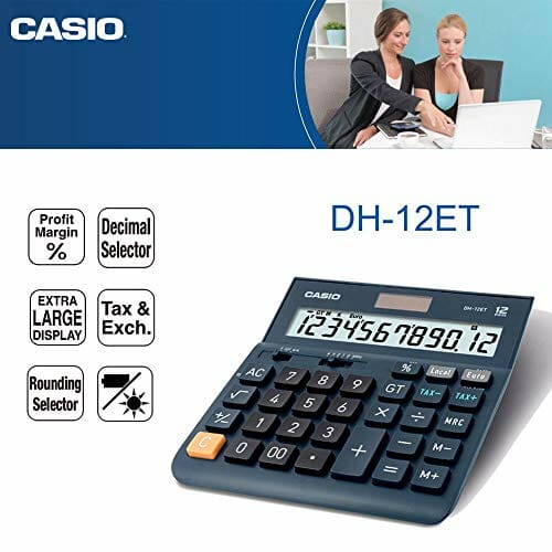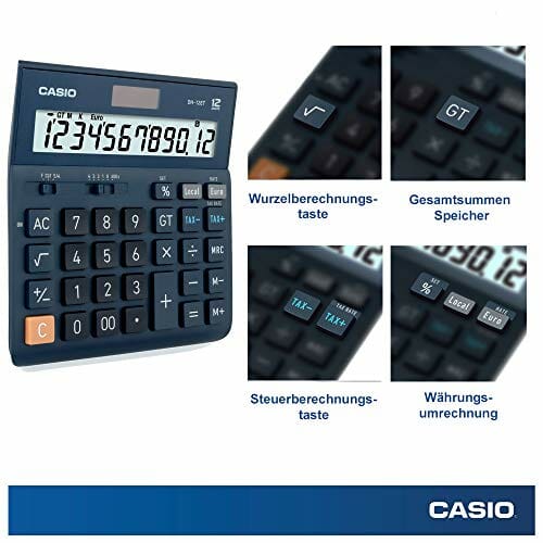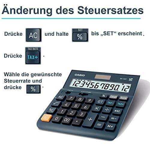 ‎CASIO Tischrechner DH-12ET, 12-stellig, Steuerberechnung, Gesamtsummen-Speicher, Solar-/Batteriebetrieb