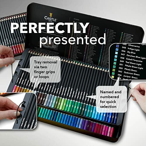 Castle Art Supplies 120 Zestaw ołówków do kolorowania | Wysokiej jakości kolorowe wkłady z miękkim rdzeniem dla dorosłych artystów, profesjonalistów i kolorystów |Chronione i zorganizowane w blaszanym