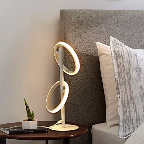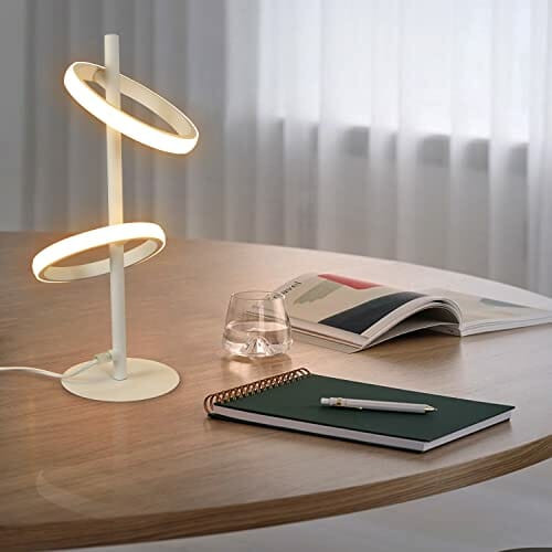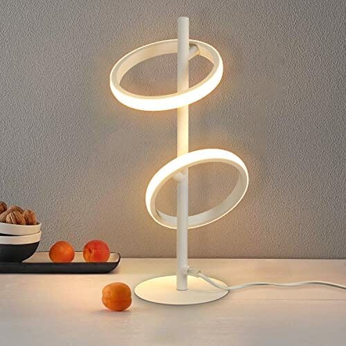 CBJKTX Nowoczesna lampa stołowa LED – Okrągła lampka nocna Biały Odpinane pierścienie obrotowe 13W 3000K Ciepła biel do Sypialni Salon Pokój dziecięcy Biuro