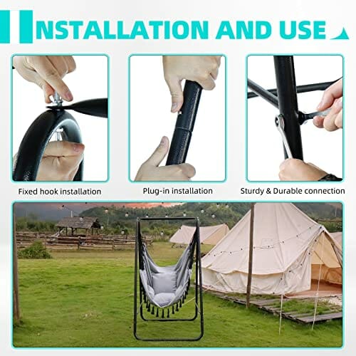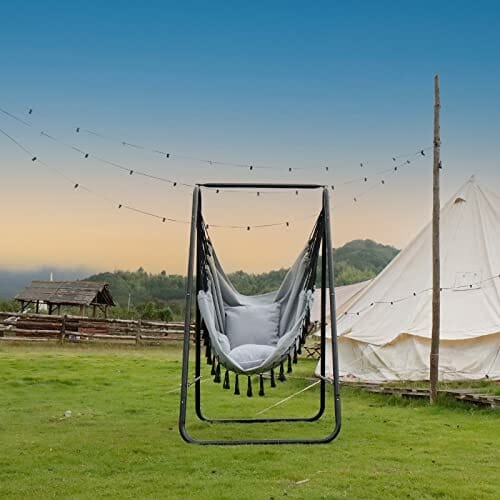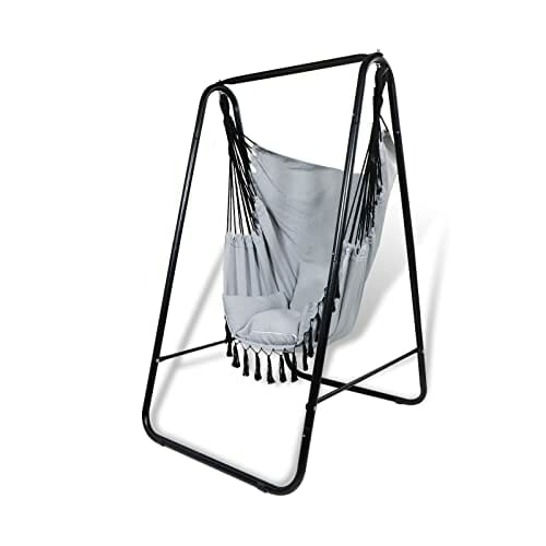 CCLIFE Wiszące krzesło z ramą i 3 poduszkami Wisząca huśtawka Wiszące krzesło do 100 kg,kolor:Szary