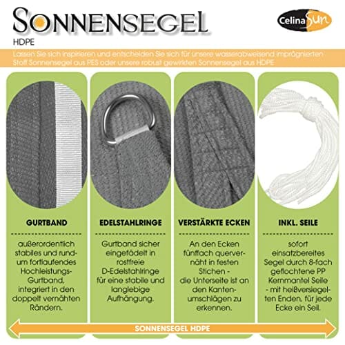 Einzelheiten: CelinaSun Sonnensegel HDPE UV-Schutz in vielen Größen, Formen und Farben