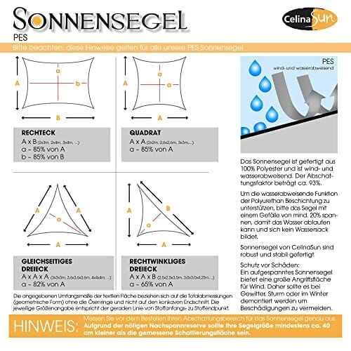 Einzelheiten: CelinaSun Sonnensegel PES UV-Schutz in vielen Größen, Formen und Farben