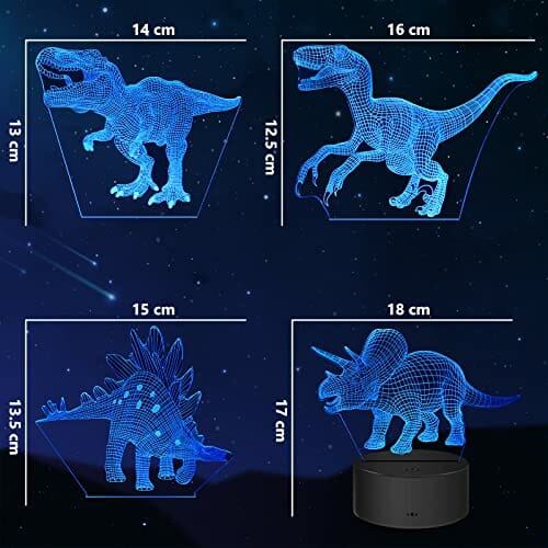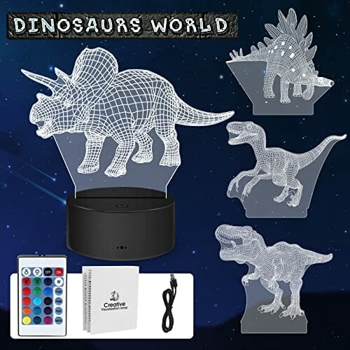Lampka nocna z iluzją dinozaura 3D, z diodami LED, prezent dla chłopców i dziewczynek, 16 kolorów zmienianych za pomocą pilota, do dekoracji sypialni, pomysłowy prezent urodzinowy dla dzieci, 4 szt.