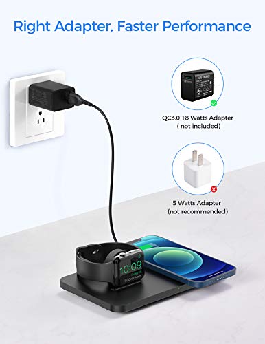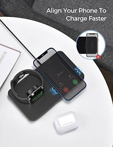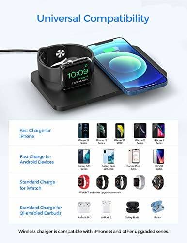 CGZZ Indukcyjna stacja ładująca 15 W, 2 w 1, bezprzewodowa ładowarka, kompatybilna z i/Phone 13/12/11/XS/XR/X/8P Airpods 2/Pro, Apple Watch Samsung S21, czarna