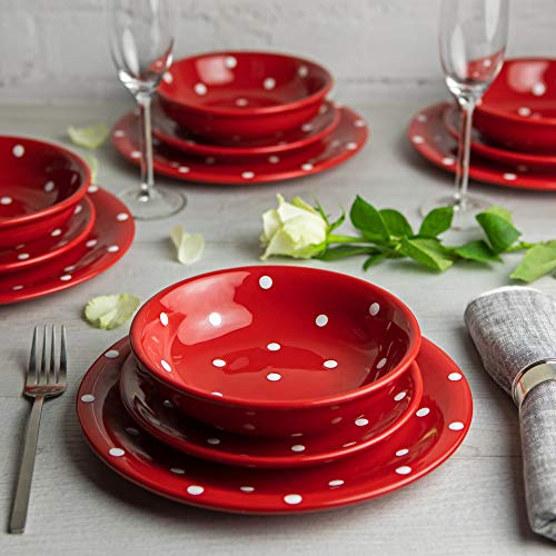 City to Cottage Czerwone i białe ręcznie malowane ceramiczne – Zestaw naczyń stołowych