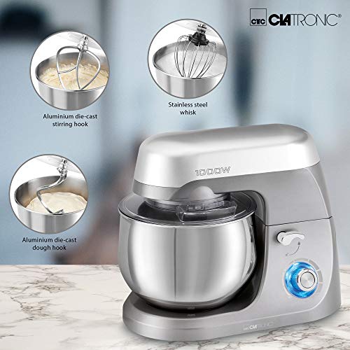 Clatronic KM 3709 Robot Kuchenny do Ciasta Tworzywo – Moc 1000W, Miska 5L, Wytrzymała Przekładnia