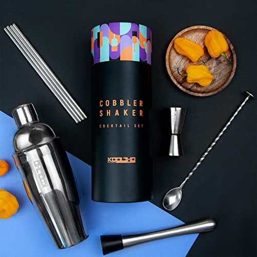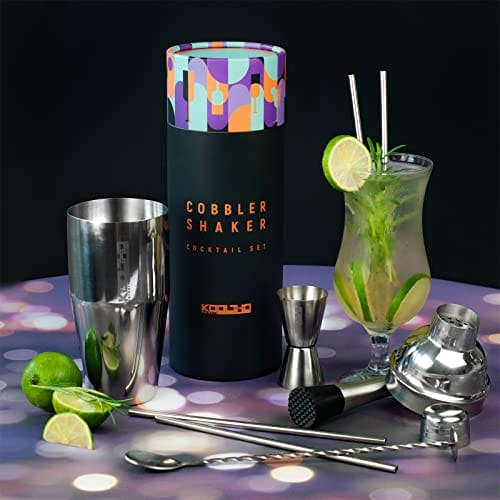 Boston Shaker Set Cocktail Kit Full Bar Mixer Sets for Professional Bartender Stainless Steel Drink Shakers Weighted Tin with Strainer Jigger Spoon Muddler Straws Cocktails Lovers Gifts Women Men