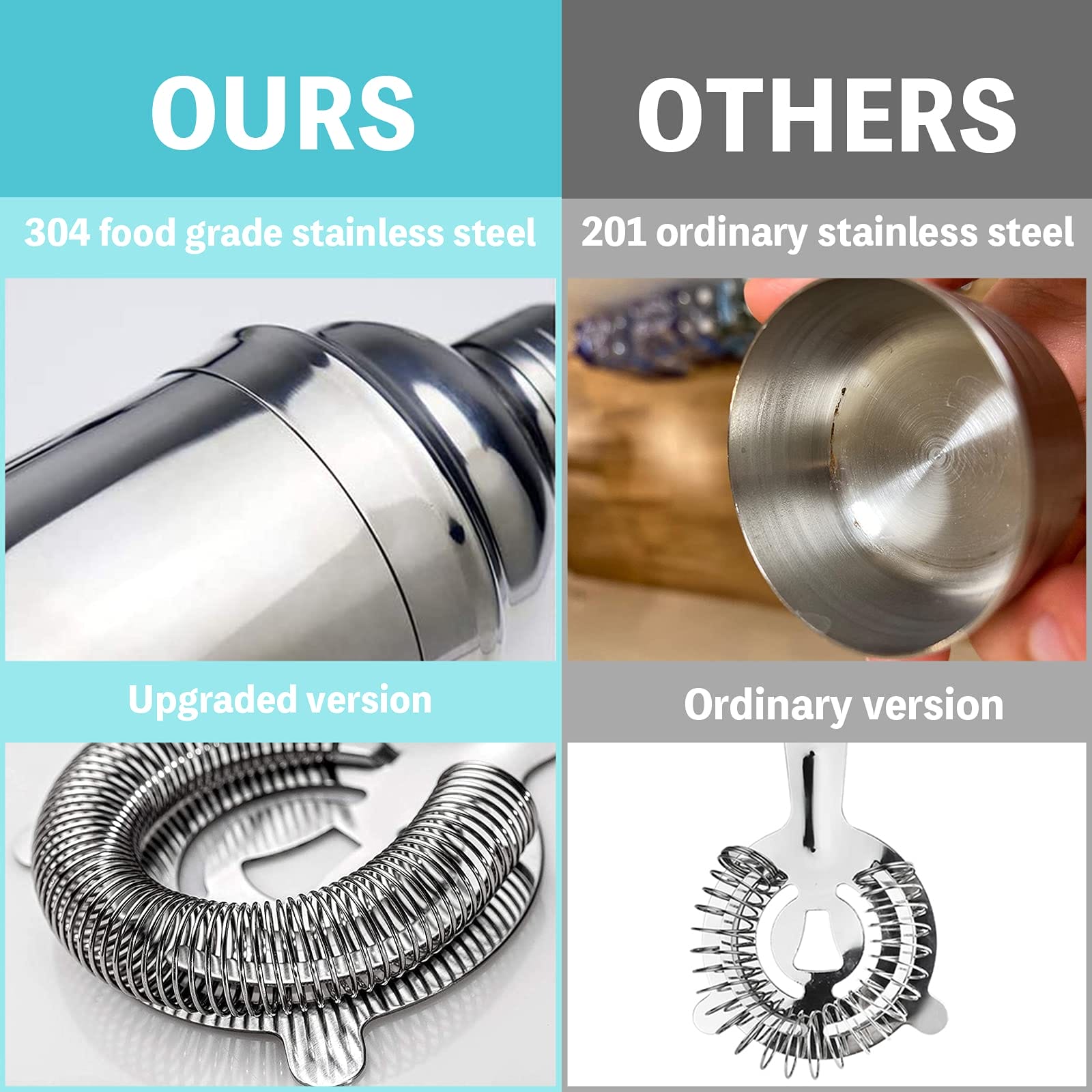 ✅ ✔ Trwałe wykonanie:: ✔ Trwałe wykonanie: Wszystkie narzędzia są zaprojektowane tak, aby być praktyczne i eleganckie, a jednocześnie wystarczająco trwałe do codziennego użytku. Dlatego, w przeciwieństwie do podobnych koktajlowniczek, które łatwo rdzewieją, ten zestaw koktajlowy jest wykonany z wysokiej jakości stali nier