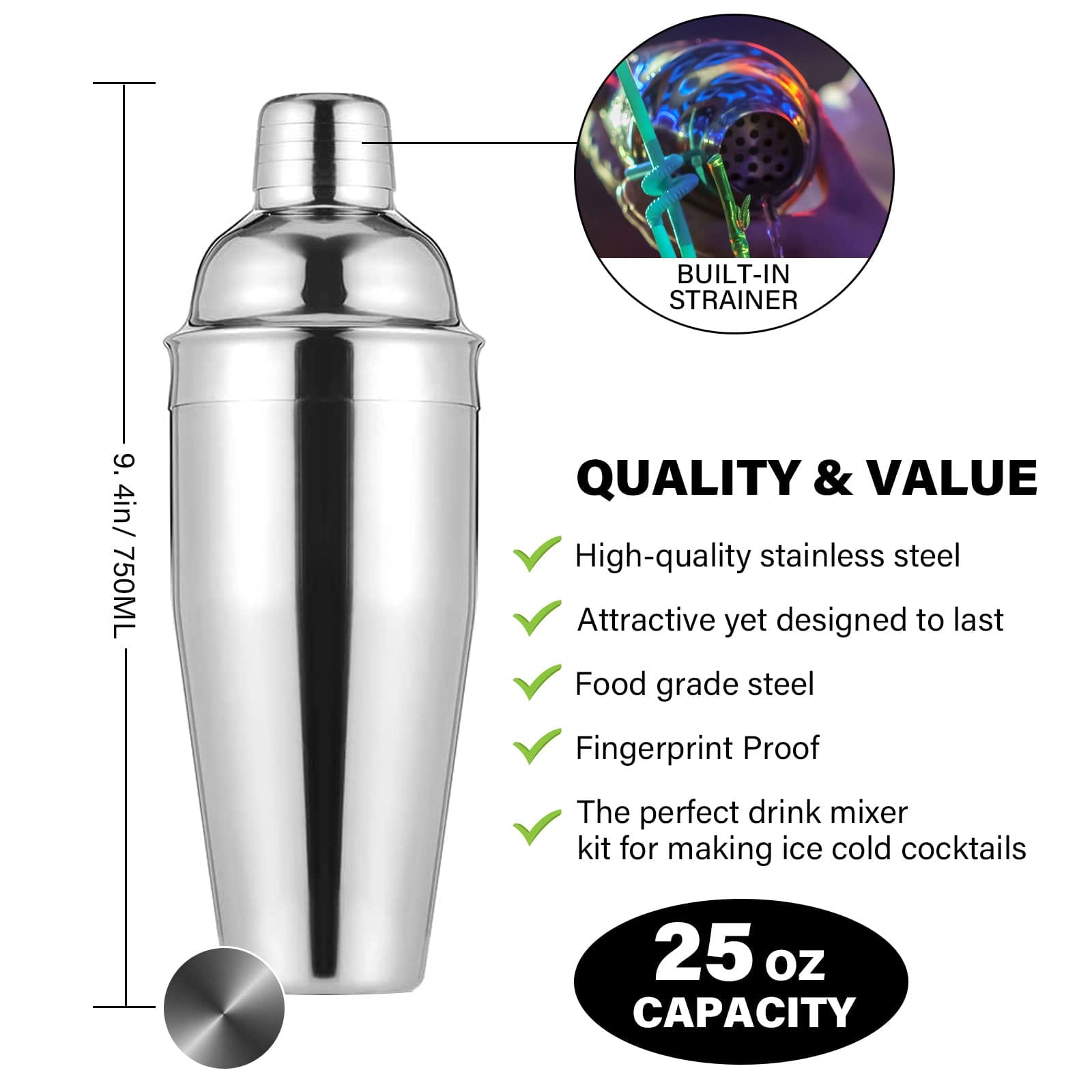 Zestaw Shaker do Koktajli 12 Elementów ze Stali Nierdzewnej – AOKITO