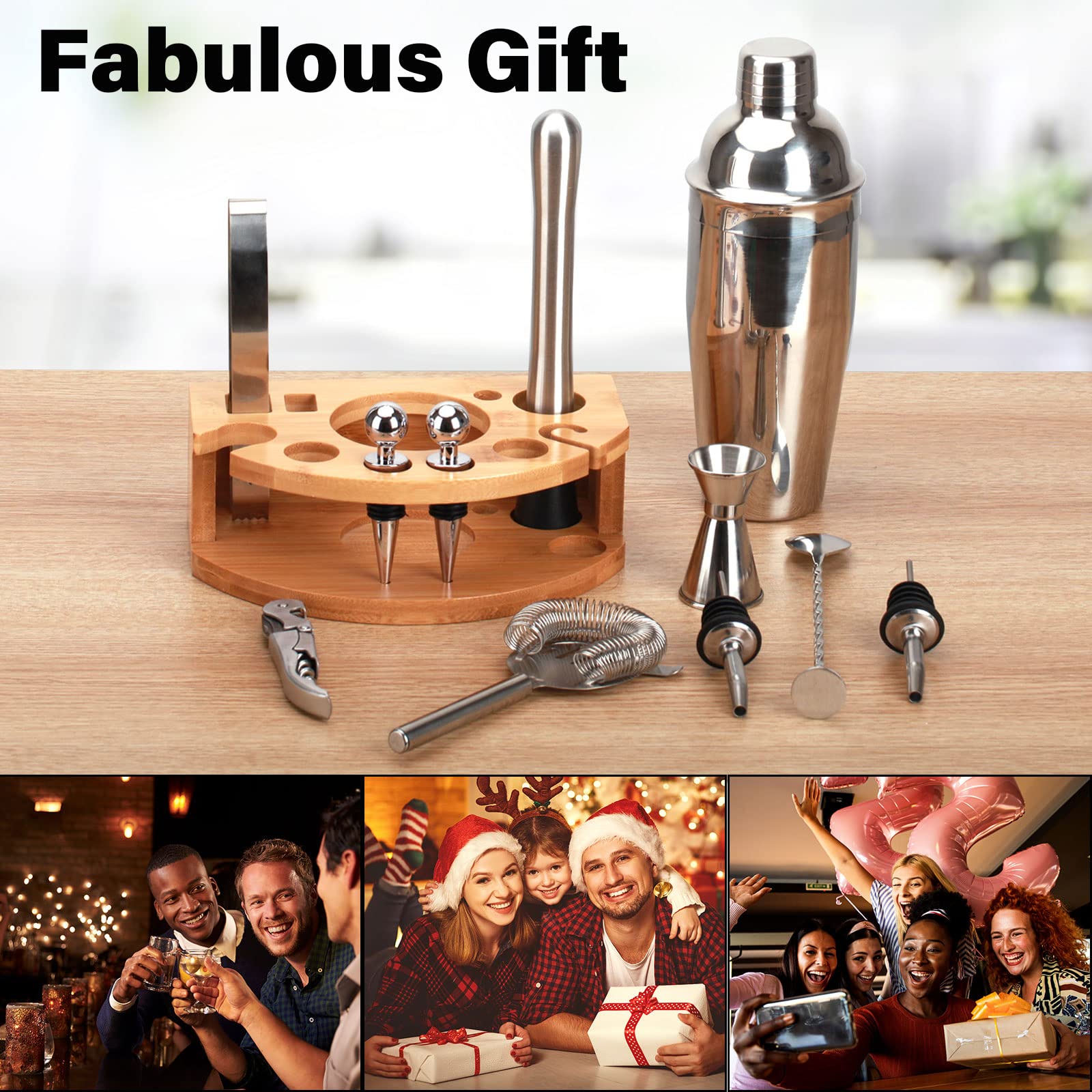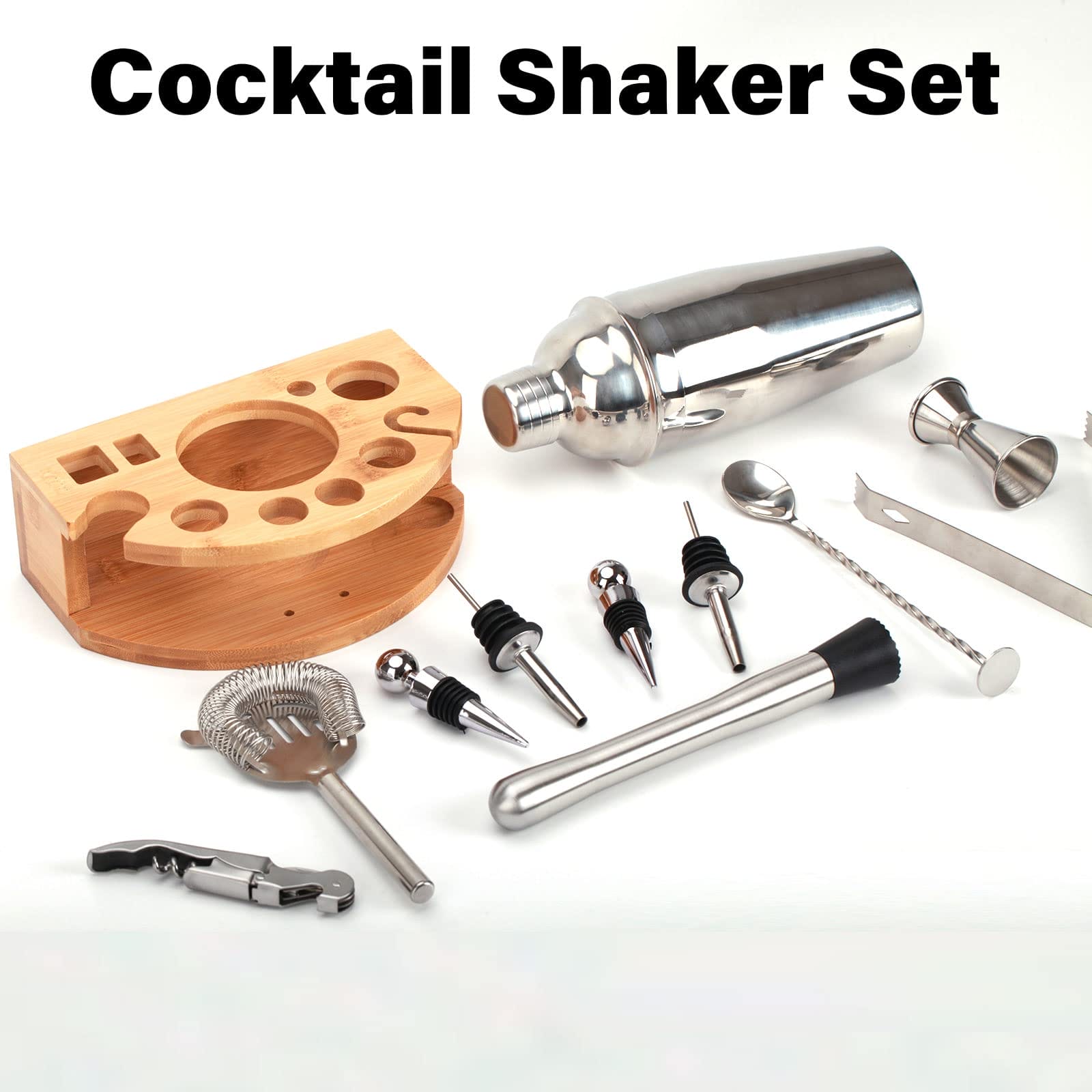 Krótki opis: Przygotuj profesjonalne koktajle w domu lub barze dzięki naszemu zestawowi Shaker do Koktajli 12 Elementów ze Stali Nierdzewnej. Zawiera on 750ml shaker do koktajli oraz zestaw mikserów, które pomogą Ci stworzyć doskonałe mieszanki. Drewniana podstawa dodaje elegancji i stabilności.
