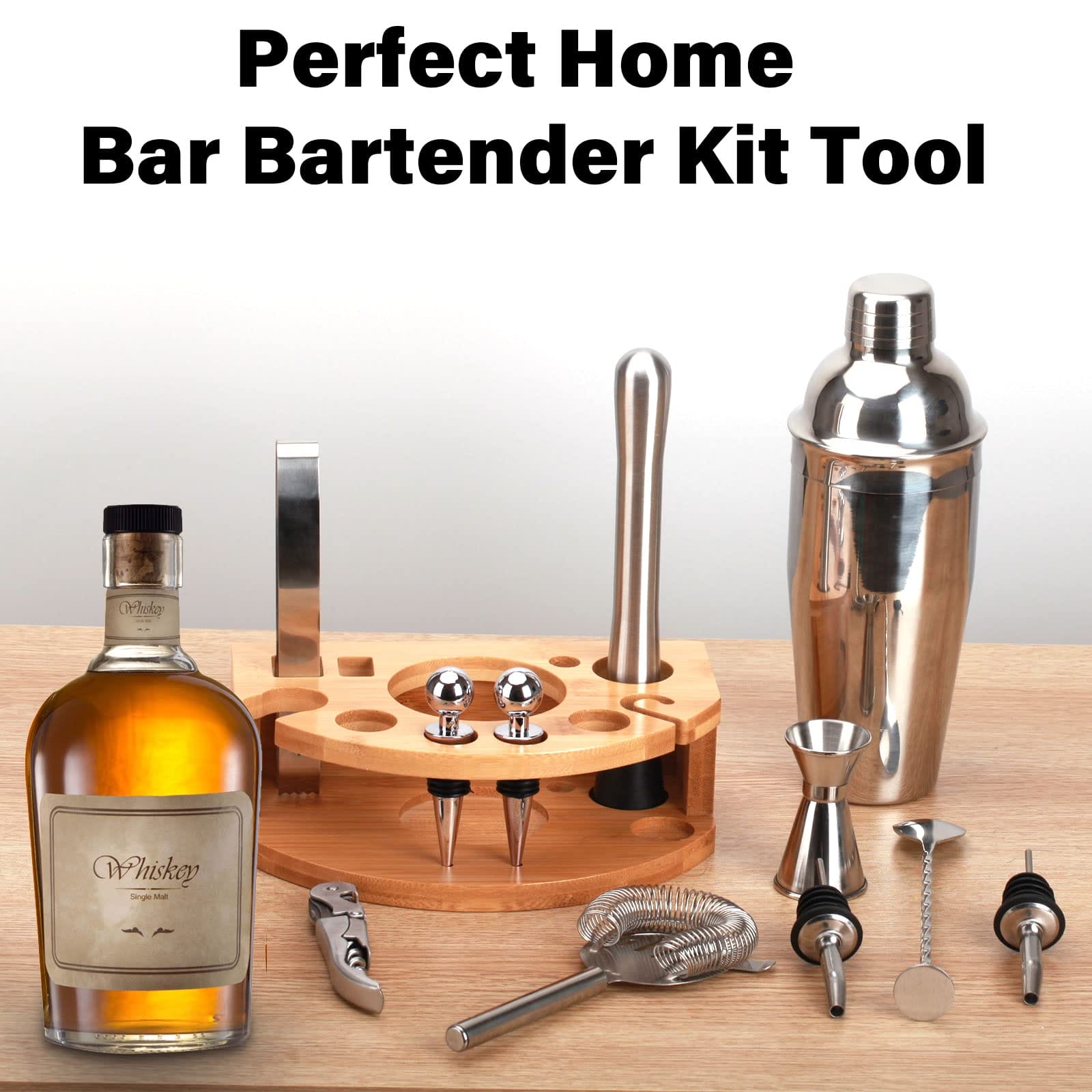 Zestaw zawiera 750ml shaker do koktajli, który pozwoli Ci na przygotowanie większych porcji napojów. Dodatkowo, zestaw mikserów umożliwi Ci precyzyjne dozowanie składników i stworzenie idealnego smaku. Drewniana podstawa nie tylko dodaje elegancji, ale także zapewnia stabilność podczas mieszania.