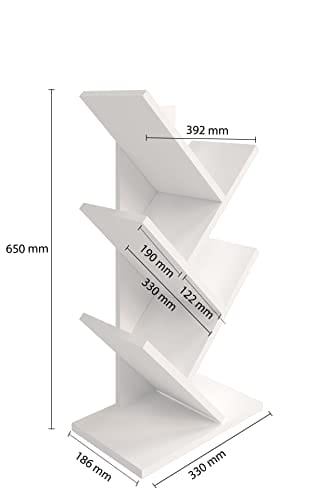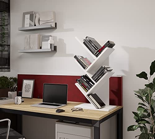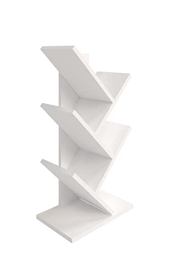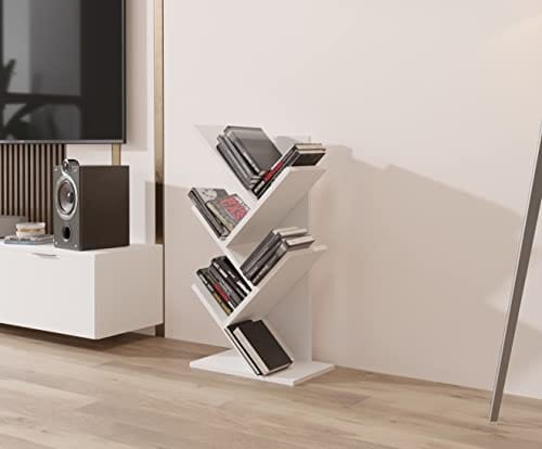 Regał w kształcie drzewa, Regał na biurko, Regał na książki wolnostojący, Regał do salonu, biura, sypialni i kuchni, 5 półek, Biały