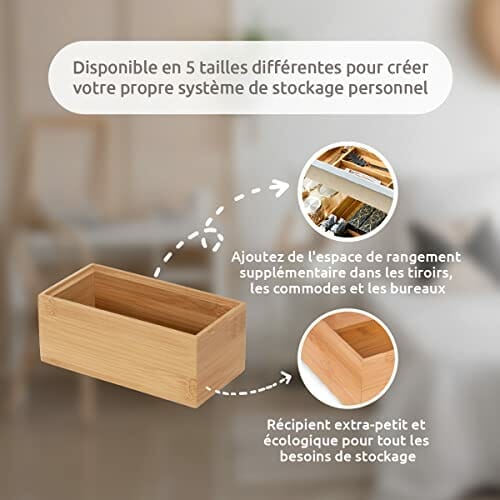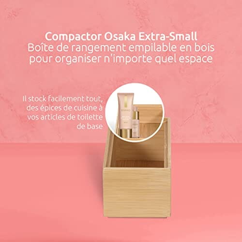 Compactor Bambusowy Stosowalny Organizator do Szuflad, Drewniana Skrzynka na Przechowywanie, Organizator na Makijaż i Pudełko na Biżuterię, Rozmiar X-Small, Seria Osaka, Brązowy