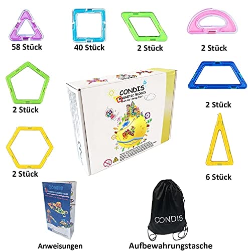 - 【100% ZUFRIEDENHEIT GARANTIERT】 Condis ist bemüht, sämtliche Fragen rund um Produkt und Service zu bearbeiten, und engagiert, allen Kunden ein 5-Sterne-Kauferlebnis zu bieten. Wir bieten Ihnen schnellen und zufriedenstellenden Kundenservice.50-Tage Geld-zürck und 12-Monate Produkt Garantie ist immer dabei, so können Sie mit Vertrauen kaufen. Magnetspiele bauklötze pädagogisches kinderspiele ab 3 jährige junge (jungs/ jungen) / mädchen/ kleinkinder.