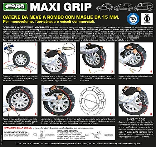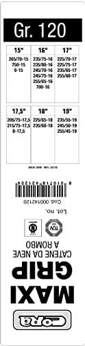 Zainwestuj w Cora 000142120 łańcuchy śniegowe „Maxi Grip” 15 mm grupa 120 1 para i ciesz się bezpieczną jazdą w zimowych warunkach.