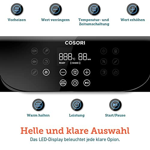 - 【100 Deutsch Rezepte inklusive】: Im Vergleich zu andere Product mit wenigem oder keinem Kochbuch, Unsere Cosori-Köche haben über 100 köstliche Rezepte handgefertigt, um Ideen für jede Mahlzeit zu inspirieren. Beginnen Sie Ihre gastronomische Reise mit Rezepten auf Deutsch von COSORI