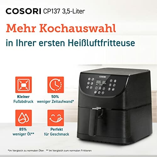 COSORI Heißluftfritteuse 3,5L, Heissluftfriteuse Ohne ÖL mit 13 Programmen, 1500W, Airfryer XL für 1-3 Personen, 100 Deutsch Rezeptheft, Digitalem One-Touch Screen, Vorheizen&Warmhalten, Shake-Modus