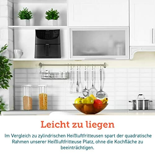 - 【Kochen mit 85 % weniger Fett】: Mit Rapid Air Technologie können Sie gleichzeitig den knusprigen Geschmack frittierter Speisen genießen. Mit 85 % weniger Fett als herkömmlich frittierte Speisen ist diese Heißluftfritteuse das perfekte Geschenk für gesundheitsbewusste Familie oder Freunde