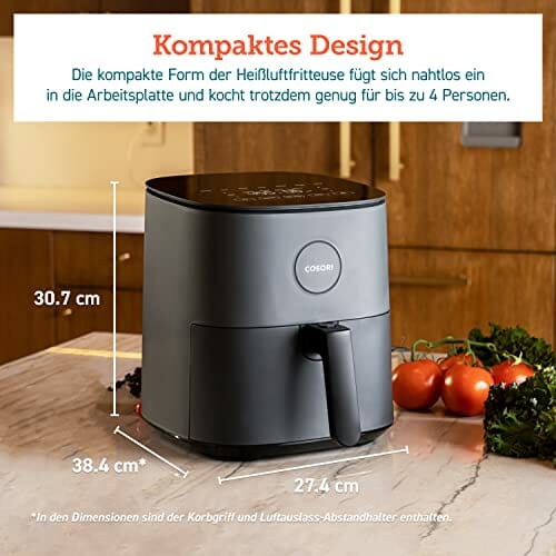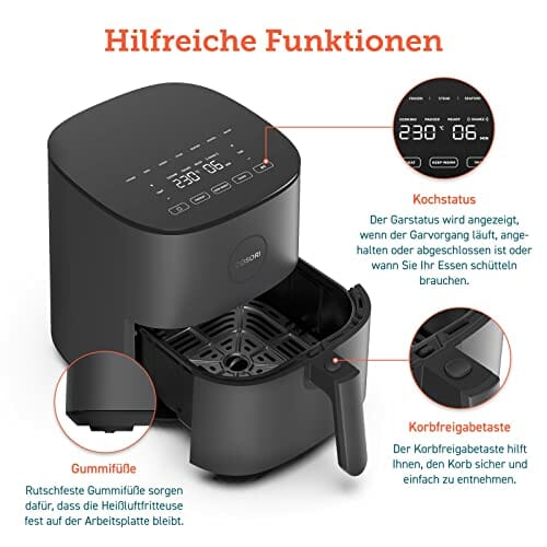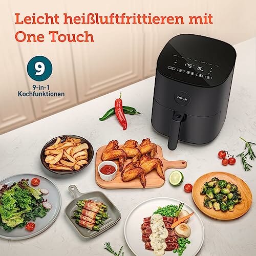 COSORI Heißluftfritteuse XXL 4,7 L, Energieeinsparung 9-in-1 Airfryer, Max 230℃, kompakte Heissluftfriteuse mit Rezeptbuch auf Deutsch, Ohne ÖL mit Digitalem Display, Leise, 4 Portionen, 1500W