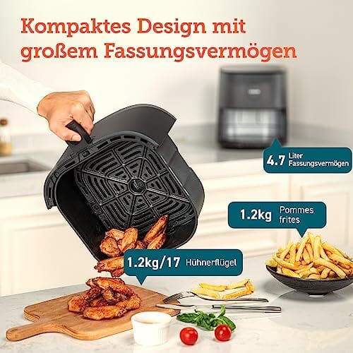 - 【Große Kapazität, kleine Stellfläche】Kompaktes 4,7-Liter-Design für Sie oder Ihre Familie (geeignet für 4 Personen oder 1,5-1,8 kgHähnchen; Korb: 22,9*22,8*11,0 cm)