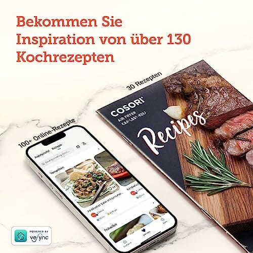 - 【Note】Spannung – AC220V, 50/60Hz; Temperatureinheit ℃ kann nicht umgeschaltet werden ℉; Das Rezept kann in der App unter Wellness – Recipe abgerufen werden,aber CAF-L501 ist kein Wi-Fi-Modell und kann nicht mit der VeSync-App verbunden werden