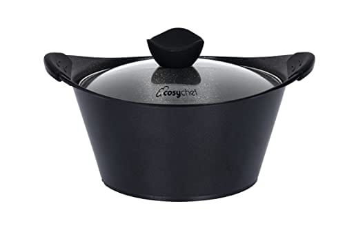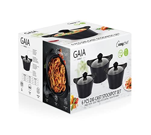 5. Estetyczny design: Zestaw garnków CosyChef Gaia wyróżnia się eleganckim i nowoczesnym designem, który będzie doskonale prezentować się w Twojej kuchni. Dodatkowo, ergonomiczne uchwyty zapewniają wygodę podczas przenoszenia i manipulowania garnkami.