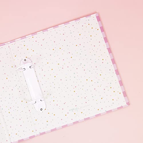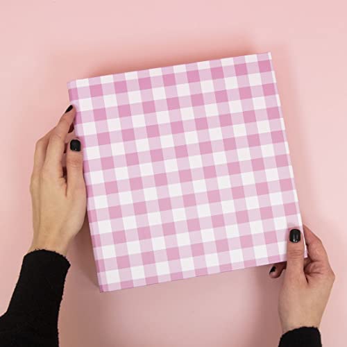 Craftelier Album kartonowy z nadrukiem Vichy (15 cm x 20 cm), system 2 białych metalowych D-ringów, twarde okładki i solidne, rozmiar 22,5 x 23 x 6 cm, różowy