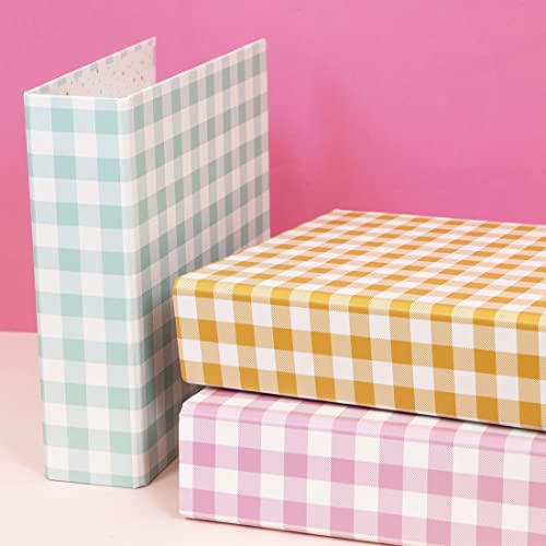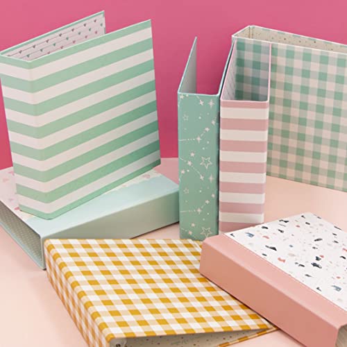 Craftelier Album kartonowy z nadrukiem Vichy (15 cm x 20 cm), system 2 białych metalowych D-ringów, twarde okładki i solidne, rozmiar 22,5 x 23 x 6 cm