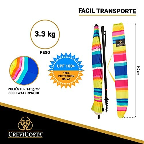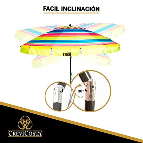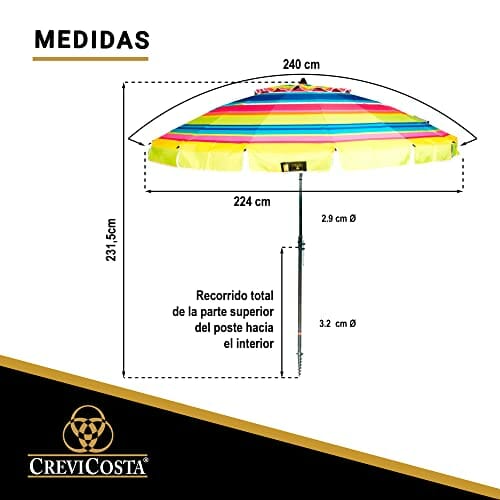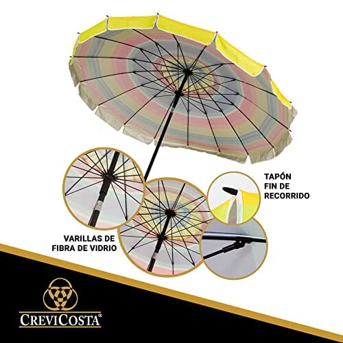 CREVICOSTA QUALITY MARK MARCAS DE CALIDAD Sonnenschirm mit Spiralbindung und Totalwegstange, Regenbogenfarben, 200 cm