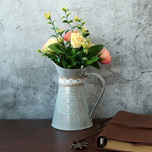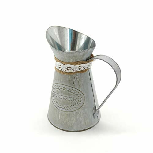 CVHOMEDECO. Wiejski prymitywny mini dzbanek pojemnik na mleko z wiązaniem i lnem, elegancka rustykalna doniczka na kwiaty do ogrodu i dekoracji domu. 5-1/4 x 9,5 x 15,1 cm
