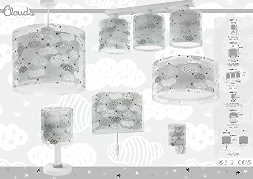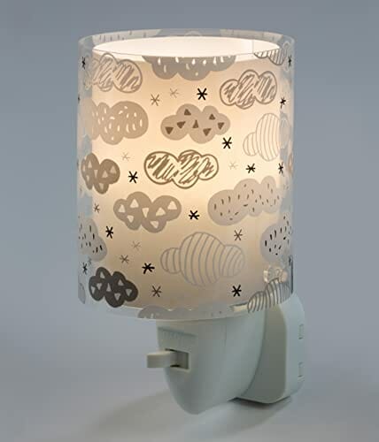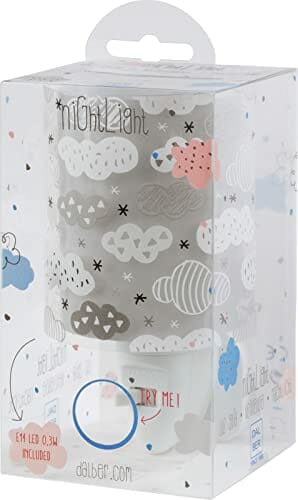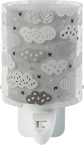 Dalber Lampka nocna z gniazdkiem dziecięcym, lampka nocna LED do pokoju dziecięcego, chmury, szara, 12 x 8 x 14 cm