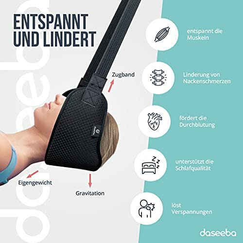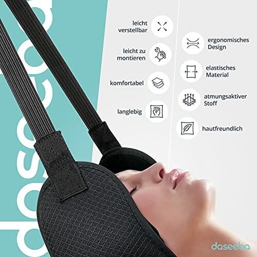 • Praktyczny i wszechstronny – hamak relaksacyjny firmy daseeba jest bardzo łatwy w regulacji, ma wyjątkowo ergonomiczny design, może być używany zarówno w domu, w ogrodzie, w pracy, w podróży lub na łonie natury (mocowanie do klamki drzwi/drążka/drzewa/poręczy). Podpórka szyjna unisex może być używana jako hamak na kark, hamak na szyję, huśtawka na kark, hamak na głowę, hamak relaksacyjny, pasek na szyję i mata relaksacyjna.
