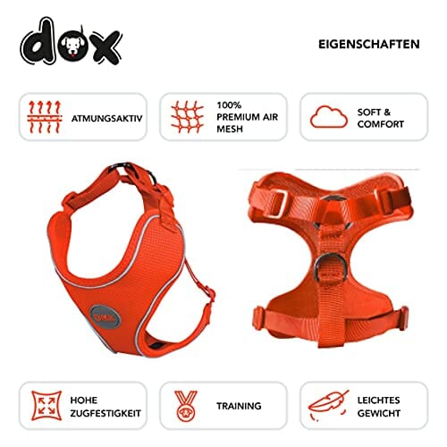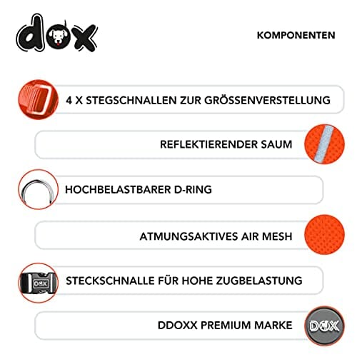 DDOXX Szelki dla Psa, Odblaskowe, Regulowane, Bezpieczne |Akcesoria dla Psa |Smycz dla Psa | Obroże dla Psa | Szelki dla Psów| Zabawki dla Psa | Szelki dla Kota| Pomarańczowy, M