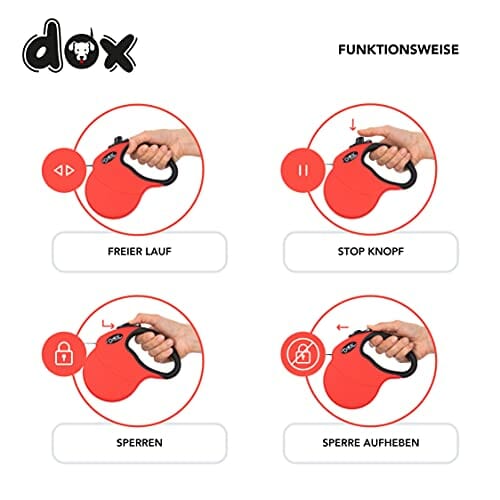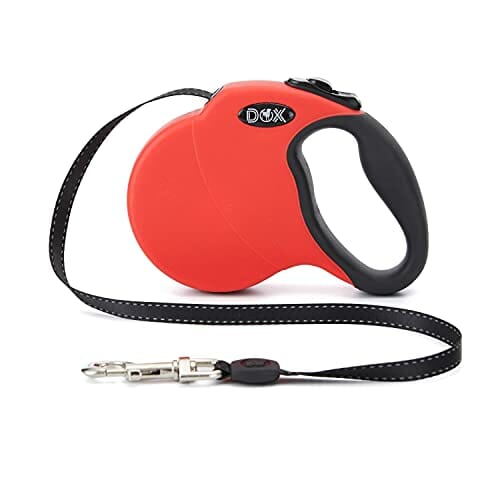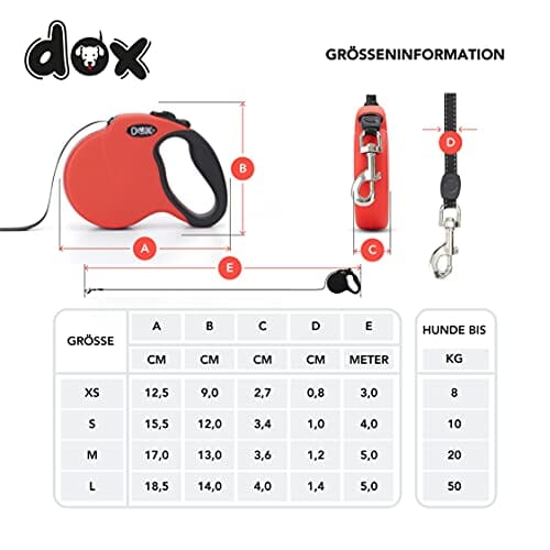DDOXX Smycz dla Psa Flexi Odblaskowa | Wiele Kolorów i Rozmiarów | dla Małych i Dużych Psów | Smycz Automatyczna dla Psa i Kota |Szelki dla Psa | Akcesoria dla Psów | Czerwony – L | 5m | do 50kg