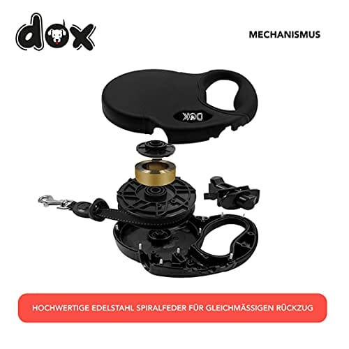• [MOCNE ARGUMENTY] – Pasek smyczy wykonany został z wysokiej jakości nylonu z dwoma jasnymi paskami odblaskowymi i nadaje się dla małych, średnich i dużych psów. Nylon wykazuje odporność na pleśń, korozję i ścieranie. Automatycznie zwijana smycz posiada wysokiej jakości sprężynę zwojową ze stali nierdzewnej, która gwarantuje długotrwałą i niezawodną funkcjononalność mechanizmu rozwijania i zwijania taśmy.