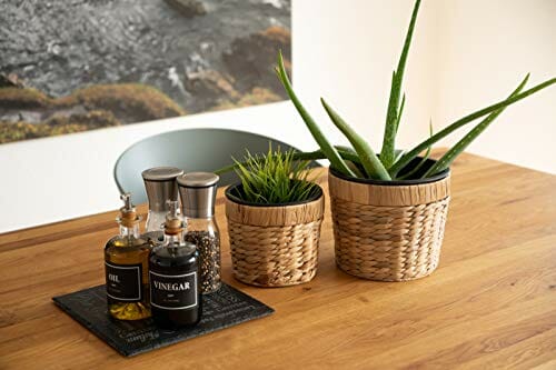 • Dzięki naturalnemu wyglądowi słomy czy hiacyntu wodnego, doniczka nadaje się do stworzenia wyjątkowo przytulnego i ciepłego klimatu pomieszczenia, pasującego do stylu skandynawskiego.