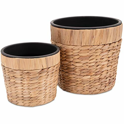 Decorasian zestaw 2 okrągłych doniczek, plecionych z trawy morskiej, z stabilnym wkładem z tworzywa sztucznego, średnica odpowiednio: 20 cm, 26 cm
