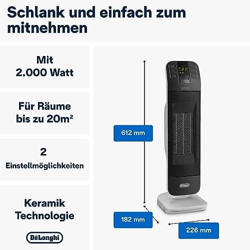 De’Longhi HFX65V20 grzejnik ceramiczny (2000 W) czarny/szary – Innowacyjne rozwiązanie dla Twojego komfortu!