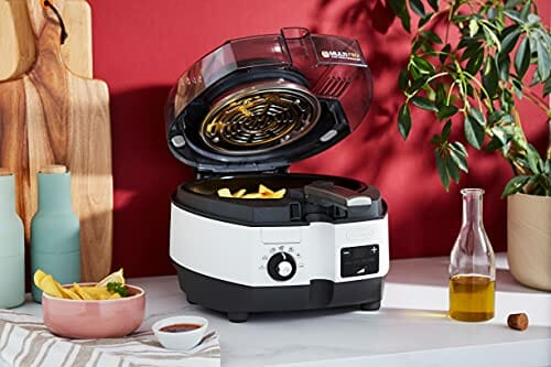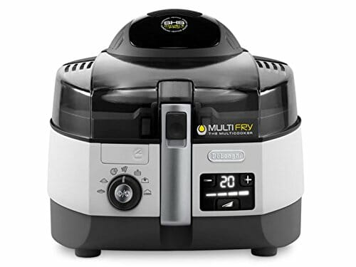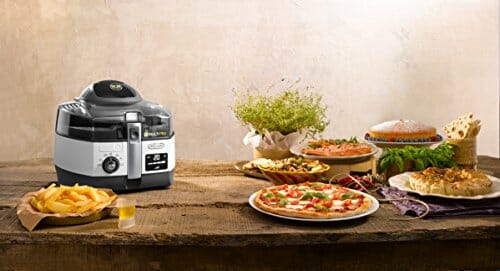 De’Longhi MultiFry Extra Chef FH1394 Heißluftfritteuse, Multicooker mit 1,7 kg Fassungsvermögen, 7 Kochprogramme, Umluftsystem mit 2 Heizelementen, Rezepte-App, 2300 Watt, Grau/Weiß